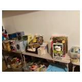 Hand Painted Demi Lou with matching mirror, French style vanity with bench, mid century record cabinet. Walnut cabinet, contemporary dresser, modern dinette table. hand painted country cabinet, antique singer sewing machine. Nippon, Nortaki, Rosenthal, Lenox, plus other China sets. Candle wicks, many new kitchen items. Pyrex tea pot collections, piano shaw, a vintage type written. A safe, tools, upright freezer and refrigerator. Many pieces of fine ladies clothing, hats, purses, shoes, and costume jewelry. Records - 45 records, and CDs. Little soul dolls and carriages. Red flyer wagon, unicycle, and metal plant stands. New plush toys, other toys and games. Antique fishing rods, lures, reels, tackle box and scale. Antique cameras, sports, comics, signed NASA, pharmacist collection. 50 + year old H8 trains, Starwars collectibles and so much more.