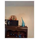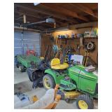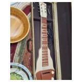 Items being offered include: 1950's Gibson B-9 lap steel guitar; John Deere lawn tractor, tools and tool boxes; snow blade, leaf collector and cart; generator; nice furniture including end tables, love seat, king size bed, night stands, bookcases cases, side tables, desk with book shelves above, futon, oak table with one leaf and 6 chairs, recliner and more; Christmas trees, lots of Christmas decor; 20 pieces of vintage crackle glass; lots of depression glass; several Whitehall crocks; pocket knives; jewelry; tools; patio table with chairs and umbrella; porch swing; Brother 950D Innovis sewing machine; LOTS of sewing and quilting related items; Roomb I-Robot vacuum; upright freezer and LOTS, LOTS more! |
