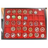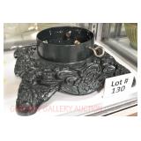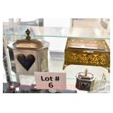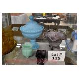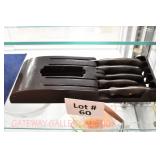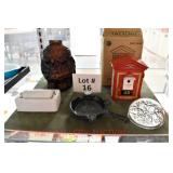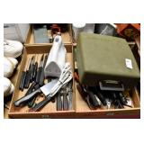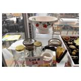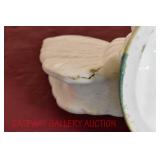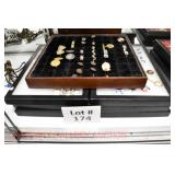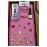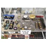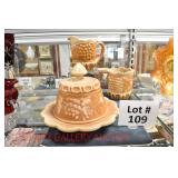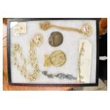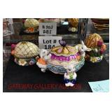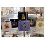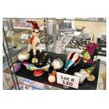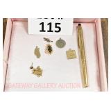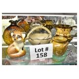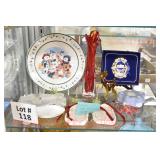 Cases Catalog - March 24, 2025 1 Baldwin Brass & Delft China: (5) Baldwin Brass candlesticks (non-matching); Royal Goedewagen Delft tea jar w/brass lid 2 Pilgrim Cranberry Glass: pair Adams cranberry tumblers; heart dish swirl cranberry glass; square 6.75" tulip cranberry glass vase; 4.5" creamer w/applied handle, bennington pattern; kings crown footed water glass 3 Colonial Virginia Tea Set: Copper with brass handles - teapot, creamer, sugar & tray 4 Waterford & Other Glass: Waterford decanter; square lead crystal decanter; lead crystal toothpick; amber 3.25"" tumbler; amber blown glass vessel signed LV 1979 5 (2) Vaillancourt Santas: #312 2006 Colonial Williamsburg Exclusive 7""; #22 2005 Colonial Williamsburg Exclusive 9.5" 6 Tobacco, Dresser & Trinket Boxes: Stieff Williamsburg pewter w/brass tobacco box; brass French Provincial style dresser box; Stieff Lenox Williamsburg heart trinket box 7 (2) Vaillancourt Santas: #192 2006 Colonial Williamsburg Exclusive 6""; #364 2005 Colonial Williamsburg Exclusive 8.5" 8 Sterling, 10k, Wristwatches etc.: (2) 10K tie tacks; sterling NJ gun club belt buckle; (3) wristwatches - wolbrook, Seiko, Midwestern state university; (2) magnifiers 9 Wood Dresser Box: inlaid top (crack on lid) with key 10 Porcelain China Chicken on the Nest: paint decorated, chip on chin, chip on inner rim of base 11 (7) Belt Buckles & (3) Money Clips: (2) belt buckles marked German silver; (1) award design buckle (artist signed); (1) German silver money clip; (2) duck stamp money clips 12 Knives, Pocket Knives, Lighter: Colibri lighter in orig. box; S&W pocket knife; rigging knife; Sheffield utility knife; S&W black ops knife; S&W M&P knife + (1) other 13 Cutlery, Knives, Baton, Tokens: Robeson cutlery 6 knife set w/case (missing 1 knife); Gerber dagger w/canvas sheath; Shrade pocket knife w/leather holder; Buck pocket knife w/leather holder; retractable metal baton with canvas holder; trapshooting tokens 14 Ireland China Tea Set: teapot, creamer, sugar, (2) cup/saucer sets 15 Fire King Nest of Bowls: graduated set of (3) with fruit painting 16 Banks, Paperweight, Ashtrays: amber glass figural owl bank; cast metal fire box bank w/orig. box; snowflake paperweight; enameled cast iron skillet ashtray; desk stamp accessory 17 Knives, Advertising, Pyrex: Case XX knife (2); Pyrex individual casserole; Case pocket knife; knife sharpener; Kool cigarette playing cards; NRA token; French coin; NRA pin 18 14K & 10K Gold Jewelry: 10K ring w/possible diamond chip; 14K gold wedding band 19 Lenox & Sadler Teapot: Lenox dove dish; Lenox decorative plate; Sadler teapot 20 Lenox, Art Glass & Paperweight: Lenox vase w/birds & leaves; art glass vase; Vitrix 1998 apple paperweight 21 Skelatura Gargantuan Gorilla: monster model in orig. box - appears to be complete in box, box is rough 22 Barbie Clothing: assorted, some with Barbie Tags 23 Books & Plaque: Hippocrates cast metal wall plaque; Oakwood Ohio past and present HB book; History of the Ohio; Centennial History of Shadyside Presbyterian church; (1) other 24 Barbie: 1966 Barbie & Vanity with accessories 25 Fire King, Kitchen, Advertising: Tulip S&P shakers (missing lid on salt); (2) Fire King casserole dishes; Hazel Atlas Frostie root beer mug 26 (2) Mortar & Pestles: stone and wood 27 Native American, Minerals, Carved Figurine: Native American stone tool; Native American pot with lid; stone teapot; carved parrot; (8) minerals; (3) arrowheads 28 Viking Glass: blue bird covered dish (bird tail tip chipped) 29 (3) Paperweights: floral; bubble; rabbit 30 Laszlo Ispanky Figurine: ceramic fairy in cloche 31 (4) pcs. Fire King: cornflower round casserole; cornflower rectangular casserole; all fruits round casserole and rectangular casserole 32 Pyrex Refrigerator Dishes: large yellow with lid; medium blue; (2) small red; (2) 7 oz. berry dishes red 33 Glass & China: Duncan Miller divided relish ruby glass; art glass vase; fish dish w/condiment spoon; Royal Worcester Avon 1982 34 (8) Peanut Butter: (6) tulips; plums; parakeets 35 Pocket Watches, Pins, Belt Buckles, etc.: (3) pocket watches; (3) wristwatches, pins, (2) belt buckles, (3) watch fobs, empire state building lucite paperweight; wristwatch band; wooden nickel 36 Sterling, .925 Jewelry: necklaces, bracelet, earrings, ring, pendants 37 10K, 14K, 18K, Gold Filled: 18K men's ring; 14K women's wedding band/engagement ring; 10K necklace & pair earrings; GF necklace, pin 38 Brooches & Pins: flowers, santa, parrots etc. 39 Costume Jewelry: Trifari, Sarah Cov., Cora 40 Costume Jewelry: necklaces, bracelet, earrings, ring, pins, belt 41 Costume Jewelry: necklaces, bracelet, earrings, pins 42 Costume Jewelry: necklaces, bracelet, earrings, pins 43 Costume Jewelry: necklaces, bracelet, earrings, pins 44 Costume Jewelry: necklaces, bracelet, earrings, pins 45 Taylor Smith Boutonniere: (21) dinner plates; (22) bread/butter plates; (12) soup bowls; (28) berry/dessert bowls; (2) small platters; (1) large platter; (3) vegetables; (1) serving bowl; (1) gravy; (28) saucers; (30) cups; S&P; creamer & sugar 46 Carnival Pitcher & Tumbler Set: marigold, blackberry & butterflies, (6) glasses, one has chip on rim 47 Glass & China, Pyrex: Pyrex, gold butterflies, ramekin; Heisey small tray; amber crest dish; bud vase w/sterling weighted base; Royal Bayreuth Bavaria ewer 48 Metronome, Drafting Tools, Binoculars: Seth Thomas metronome; Swift Aero Lite, 7x35 binoculars, w/case; draftman's set; bird figurine 49 Bank, Stoneware Mug, Tray: Ben Franklin Bank; Philadelphia stoneware blue decorated mug (modern); Governor's Palace tip tray 50 Lenox, Waterford & Bells: Lenox round leaf dish; Waterford bud vase; Waterford 1987 bell; etched cranberry bowl; (2) flower bells 51 Pens, Pocket Knives, Bell, Letter Opener: Sheaffers fountain pen w/14K tip; Parker pen; Sheaffer pencil; letter opener; (3) pocket knives; school bell 52 (6) White House Christmas Ornaments: 2005-2010 with orig. boxes 53 Napier, Monet, Trifari: earrings,