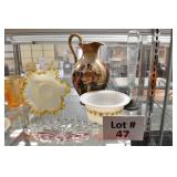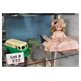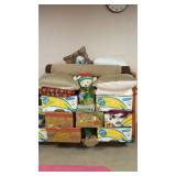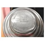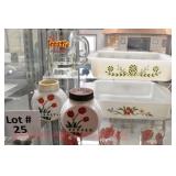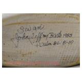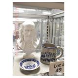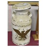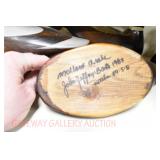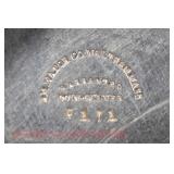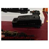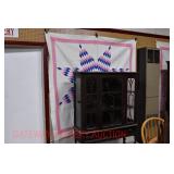 Wall Catalog 1w Rug Beater: heart/geometric design 2w Lionel Model Train: 1666 engine and tender; tanker; caboose; freight car; track; crossing signal; semaphore; crossing gate; transformer; remote control 3w Marx Model Train: engine; tender; freight car; caboose; track 4w Lionel Model Train: operating milk car with original box; crossing station with track 5w (2) German Steins: pewter lids; 2 liter and 1 liter 6w Sally Bourgeois Print: Still Life Company for Breakfast 209/500; matted and framed 7w Ruth Dunbin Watercolor: Covered Bridge; matted and framed 8w John Ruthven Print: Green winged teal; Ducks Unlimited 1989; signed; matted and framed 9w Sally Bourgeois Print: "The Antique Dealer" 212/1500; signed; matted and framed 10w Godey Style Print: Victorian women; oval; walnut frame 11w Stained Glass Window: approx. 24 inches x 16 inches 12w Reverse Painting: "On the Danube"; mother of pearl; oval frame 13w Fenton Lavabo: Milk Glass water tank with lid & spout; and milk glass basin with thumbprint pattern; wall mounted 14w Deep Walnut Frame: With still life print 15w Decorative Walnut Frame: Bird print 16w Sem Caricature: Framed and matted; "Bringing up Father" 17w Deep Walnut Shadow Box: Round; needlepoint 18w Rug Beater: Geometric 19w Deep Walnut Frame: Magazine Cutout print 20w M. Geiter Theorem: Flowers; framed 21w Reverse Painting: Bridge; paint chipping; ornate frame 22w Ullman Manufacturing Print: 1899; Victorian Women; matted and framed (Print has foxing) 23w Oval Shadow Box: Fabric Flowers 24w Large Print on Canvas: Poppies still life framed 25w Tapestry: Camels in the dessert; 41x22 26w (2) PA Game Commission Poster: "Birds of Prey" 1965; Ned Smith (has foxing); "Mammals of the Mountain" 1965; Ned Smith 27w Textile: velvet fringe; satin center; 41x48 28w Quilt: Star flower; quilt top; 5ftx 6ft; some minor staining 29w Quilt: Lonestar pattern; staining 30w Quilt: Lonestar pattern; minor staining 31w Quilt: checkerboard; staining 32w Quilt Top: Button Quilt 33w Seth Thomas Banjo Clock: Eagle finial; reverse painted 34w Advertising Clock: Lighted, Gruen 35w Wall Chandelier: Electric; has glass prisms 36w Nixon Political Poster: Thanks Dick, Charles Winfield Meggs, 1970 (ripped at corner) 37w Nixon Political Poster: Re-elect the President, foxing, creasing 38w Nixon Political Poster: Performing under pressure, the marks of professional, tears, creases 39w Nixon Political Poster: Nixon/Agnew 1968, rounded corners 40w Movie Poster: Dick - the Unmaking of the President 41w Quilt: star burst (minor staining) 42w (3) Longaberger Baskets: Easter 43w Longaberger Basket: Easter 44w Vera Bradley Laptop Portfolio: Ellie Blue w/orig. taxes 45w Milk Can: transferware Eagle decoration (chipping) 46w Stoneware Crock: 5 gal with blue keystone 47w Advertising Crate: Stauffer's Biscuit Works, original label on front (chipping, breaking, tears) 48w Egg Crate: metal, 6 dozen 49w Milk Can: hand painted decoration 50w Steiff Stuffed Bear: signed on paw 51w Ammo Crate: Winchester, wood 52w Parasol: linen, discoloration and staining 53w Advertising Crate: Stewart Mowry 54w Bushel Barrel: handled, 2 metal bands 55w PRR Lantern: red globe 56w (2) Lanterns: Luck e Lite w/red globe (repainted metal); Dietz little wizard, clear globe 57w (2) Advertising Tins: Sturgis Pretzels, R&R Pretzels (paint loss, dents) 58w Advertising Tin: National Pretzel Rods (paint loss, dents etc.) 59w (2) Advertising Tins: Charles Chips, LG Potato chips 60w (2) Advertising Tins: Utz Potato, Paramount Cottage Cheese (paint loss, dents) 61w (2) Advertising Tins: Fertax cream mints, Simons hard candies 62w Advertising Tin: Hoffman Korn Kurls 63w Cowboy Hat: Resistol black, beaver 64w Ammo Crate: Winchester, wood, with hinged lid 65w Cowboy Hat: Resistol, brown, beaver 66w (2) Anna Lee Dolls: sunflowers 67w (2) Hershey's Baskets: limited edition, (1) with box 68w Anna Lee Doll: rabbit 69w Advertising Tin: Charles chips 70w Advertising Tin: Dolans Potato Chips (dents, scratches, paint loss) 71w Advertising Tin: Lititz pretzels (dents, scratches, paint loss) 74w Whiskey Bottle: Calvert, one gallon, original labels (as is) 75w Franklin Mint & Cast Iron: Franklin Mint Diecast roadster w/orig. tag; cast iron farm produce truck (modern) 76w Milk Can: dairymen's league, painted with eagle 77w Wall Cupboard: Remington Express metal sign door, oak (broken wood on edge) 78w Cruet Castor Set: silver-plate holder with etched bottles - oil & vinegar, (2) shakers, jam jar 72w Nystrom Biological Co Model: scientific human body torso 73w Imac Computer: keyboard, external drive, works 79w Oval Wall Mirror: walnut 80w Wall Mirror: arched frame 81w German Cuckoo Clock: highly carved with deer, dachshund & oak leaf 82w Oak Corner Shelf: one shelf with cutout details