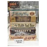 265 (4) Advertising Candy Boxes: hard candies by Ye olde brande; mounds; dreams; rope twists licorice