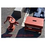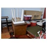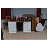 Furniture Catalog 1f Broyhill Living Room Chair: red plaid upholstery 2f Wooden Barrel: hand painted, flowers, strawberries, etc., w/painted lid 3f Pedal Tractor: Ford TW-5, chipping/loss of some paint, Ertl, Model F-68 4f Pedal Tractor: Farmall 400, repainted, Eska Tractor Cycle 5f Pair Slag Glass Lamps: modern, slag glass shades 6f Figural Centerpiece: gilded cast metal, cherub holding trident on shell bowl/planter, dolphin base, wreath decoration on base 7f Electric Fireplace Console: Real Living, 54", walnut, w/instructions 8f Advertising: (4) candy boxes 9f Advertising: (1) candy box; (2) bubblegum boxes 10f Stanley Bookcase: 2 shelves, over 3 drawers, 2-pcs 11f Parlor Lamp: matching olive-green shade & base, in Fenton style 12f End Table: cherry, 1 drawer over 1 shelf 13f Display Cabinet: 1 door, 2 shelf, over 1 drawer, stretcher base, 30s era 14f Hutch: Lewisburg Chair & Furniture Co., cherry, 2-pc, 2 shelves, step back, 1 drawer over 3 drawers over 3 center drawers over 2 side doors 15f S. Thomas Plymouth Grandfather Clock: wood paned face, w/flowers & harp decoration, wooden works, weights, pendulum, mixed woods case, needs some adjustment 16f Drop Leaf Tea Cart: oak 17f Dining Table & Chairs: (6) farm chairs, oak 18f Dining Table & Chairs: (2) boards, (4) pressed back chairs, pads, paw feet 19f Display Hutch: 2 glass doors, 2 drawers over 2 doors, Canadel 20f Dry Sink: 3 drawer top, over 2 doors, modern 21f Area Rug: 7'10" x 9' 10" 22f Leaded Glass Lamp: early bronze base, shade has been replaced 23f Wall Table: marble stand w/glass top, black, white & green marble, matches 25f 24f Brass Student Lamp: electric 25f Dining Table & Chairs: marble base table, glass top, (4) chairs, matches 23f 26f Child's Rocker: cane seat, wicker has some damage 27f Entertainment Cabinet: 1 shelf 28f Welch Steeple Clock: some veneer missing on top, 8-day, reverse painting on glass, face has been replaced 29f Bombay Style Night Stand: 2 drawer 30f Electrified Kerosene Lamp: cobalt blue, shade has some chips 31f Wash Stand: oak, 2 drawers over 2 doors 32f Sussess Gone with the Wind Lamp: matching painted peony shade & base 33f End Table: 1 drawer, cherry 34f Glider Rocker: w/matching ottoman 35f Wall Mirror: oval, double rope frame, modern 36f Durham Furniture Co. Sleigh Bed: modern, headboard, foot board, rails 37f Mattress & Box Spring: Serta Perfect Sleeper, king size 38f Seth Thomas Mantel Clock: Westminster chime, German 39f S-Roll Desk: oak, pigeonholes, drawers, center desk drawer, 2 pull out drawers & file drawer on either side 40f Decorative Wall Panels: bamboo 41f German Sled: Davos 42f Computer Desk: made in roll top style, some finish loss 43f Marble Top Night Stands: 1 drawer over 1 door, white marble 44f Table Lamp: electric 45f Replogle Globe: 12" diameter, floor stand 46f Kerosene Lamp: amber base & shade, electric 47f Double Pedestal Desk: leather insert, 2 drawers & 1 file drawer on either side, center drawer 48f Rocking Chair: oak, padded seat, pressed back w/lion head in center 49f Child's Rocker: cane seat & back, refinished 50f Adjustable Bed: Enso Sleep System, w/controls & paperwork 51f Pair of Table Lamps: china centers, cottage scene 52f Pair of Lamps: swing arms, modern 53f German Sled: wood 54f Tommy Bahama Dresser w/Mirror: 2 over 2 on each side, 1 in center, 2 on bottom 55f Pair of Night Stands: Tommy Bahama, matches 54f 56f Candle Stick Lamp: brass base 57f Bowfront China: oak, modern 58f Plant Stand: oak 59f Table & Chairs: (4) pressed back chairs, oak 60f Braided Rug: square, modern 61f Antique High Chair: barrel back, cane seat 62f Antique High Chair: cane seat & back 63f Oak Bed: head board, foot board & rails 64f Mattress & Box Spring: Pure Latex Bliss 65f Ornate Chifferobe: beveled center mirror, carved panel doors, over 2 drawers, 1 piece 66f Rayo Lamp: chrome base, satin shade, electric 67f Huffman Boyle Server: 1 drawer over 2 doors 68f Hanging Lamp: cranberry glass, electric 69f Hanging Lamp: modern, (5) shades 70f Linen Closet: oak, 2 shelves over 1 drawer 71f Miller Kerosene Lamp: electric 72f Marble Top Night Stand: 1 drawer over 1 door, white marble 73f Hide-A-Bed: Lay-Z-Boy 74f B&H Kerosene Lamp: electric 75f Kerosene Lamp: yellow center base, electric 76f Kerosene Lamp: blue bottom, crystal center, hand painted shade 77f Wall Table: 2 drawers over 2 shelves, AK&L Lancaster 78f Recliner: beige upholstery 79f End Table: glass insert, 1 shelf 80f Lift Chair: faux leather 81f Pair of Table Lamps: ceramic base, spring flowers 82f Pair of Ice Box End Stands: 1 drawer, oak, White Clad 83f Sofa: Lay-Z-Boy 84f Table Lamp: vase style 85f Table Lamp: vase w/flowers 86f End Table: cherry, Kendell, 1 shelf, 1 drawer 87f Hide-A-Bed: Sealy 88f German Sled: Davos 89f Coffee Table: 2 drawers, oak 90f End Stand: 1 drawer, 1 shelf 91f Klassner Love Seat: 2 cushions 92f Piano Lamp: brass & metal, cherub in middle, electric 93f End Table: drop leaf, 2 drawers 94f Coffee Table: drop leaf, spoon foot 95f Scooter: Speed 530, gas operated 96f Night Stand: white marble top, 1 drawer over 1 door 97f Cigar Press: (5) cigar molds in press 98f Dining Table & Chairs: cherry, spoon foot, 2 boards, (6) rush seat chairs, seats have some wear 99f Cupboard: leaded glass doors, over 2 drawers over 2 doors, oak, 2-pcs 100f Pair of Wingback Chairs: w/ottoman 101f Oversized Chair: w/storage ottoman, Albany Industries 102f Night Stand: 2 drawer 103f Table & Chairs: 2 board, (4) chairs, oak 104f Wall Mirror: oval, beveled edge 105f Mattress & Box Spring: Sealy, queen size, frame