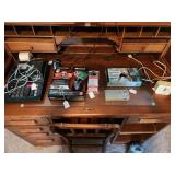 Beautiful wall clocks, large modular computer/shelving desk. Vintage armoire.