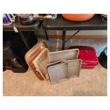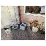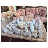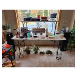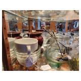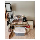 Miscellaneous items : Luggage 2 larger rolling cases and 2 carry on size with 4 wheels, Many VHS tapes : some vintage hawkey football games, movies, exercise and reflexology as well as many similar topics. There are some DVD’S too. We have slot car track and pieces, train landscaping pieces, several large and small Isabel Bloom statues, Plant/pot decor, Many wonderful art glass pieces : Blenko, Murano, Fenton, Czech Ruby cut to clear and Dichroic Krizan signed vases, Murano style glass fruit and vegetables. Fabulous modernistic art pieces, electric wall fountain, metal wall sculptures and exercise equipment.
