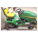 Outdoor and garage items : John Deere X350 with cyclone rake and snow clearing attachment,