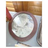 STAIN GLASS AND WOOD WALL MIRROR