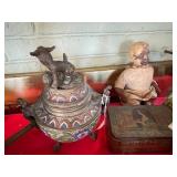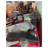 *Victorian Brass Half Tester Bed* *Japanese Curved Antique Trunk* *Metal Engraved Slant Top Trunk* *Copper & Brass Eagle Weathervane* *Ornate Lion Head Copper Pot* *1920’s Metal Wall Plaque* *Antique Rockers* *Comics* *New Men’s Designer Clothing, Shoes, Western Boots, Running Shoes, T-shirts, Tommy Bahama Shirts, Long Weather Coat, Denim Suit W/ Vest, Sweaters* *Fiesta Ware* *Antique Chairs* *Old Games* *Iron Toys* *Oak Dining Room Table* *1800’s Folding Chair* *Antique Dishes* *Marble Top Ornate Table Stand* *Old Sewing Cabinet* *Crocks* *Dressers* *Antique Stools* *Wicker Rocker* *Hudson Bay Blankets* *Vintage Electric Train Set* *Vladimir Kagan Mid Century Glass Top Table* *China* *Old Kitchen Cupboard* *Antique Wood Sugar Barrel* *China* *Antique Cast Iron Horse Drawn Fire Truck* *Old Railroad Lanterns* *Antique Cast Iron Cannon* *Old Pictures & Paintings* *Civil War 22 Lbs. Cannon Ball* *Glassware* *Haviland* *Drop Leaf Side Table* *Stief Bear* *Alfred Mekin 8 Piece Sea Life Pattern Commode Set* *100’s Of Books* *Old Records* *Old Clay Marbles* *Cast Iron John Deer Tractors & Farm Machinery* *Wyandotte Emergency Tow Truck* *Fire Engine* *Tonka Animal Truck Hauler* *Vintage Sony Reel To Reel Recorder & Tapes* *Amphora Pottery Vase* *Crystal* *Cut Glass* *Vintage Lighting* *Sterling* *Sterling Flatware* *Antique Piano Baby* *Arts & Crafts Chairs* *Pair of Oak Round Tables *Period Commode Cabinets* *2 Bikes* *13’ Kayak* *18’ Grumman Canoe* *1995 Mazda Miata 14,000 Miles Original Owner* *1997 Honda Accord 97,000 Miles*