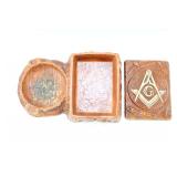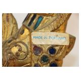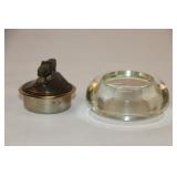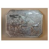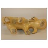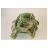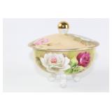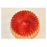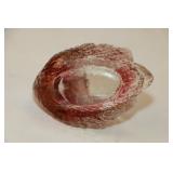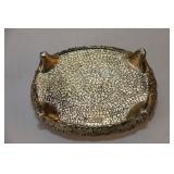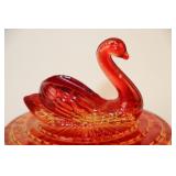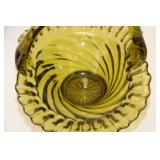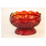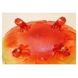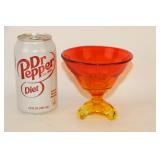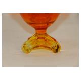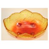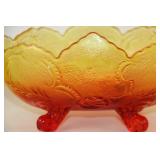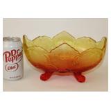 42 - MId Century Amber Glass 3 Footed Pheasant Bowl