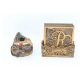 76 - Vintage Mushroom Salt/Pepper & Spoon Rest