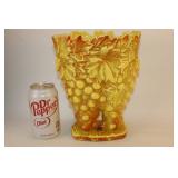 60 - Vintage Gold Amber Glass Footed Fruit Bowl