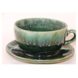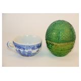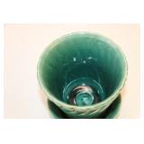1217 - Green Satin Compote & Tea Cup