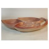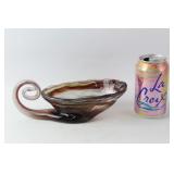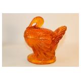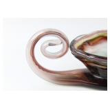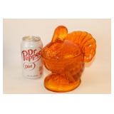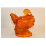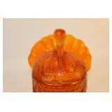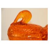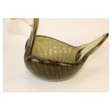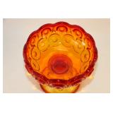 42 - MId Century Amber Glass 3 Footed Pheasant Bowl