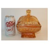9 - Marigold Carnival Glass Footed Bowl