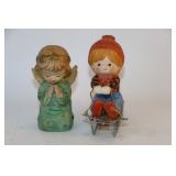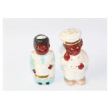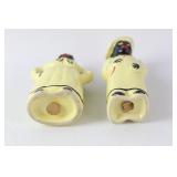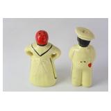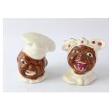 35 - 1940's Thames Redware Clown Face Salt/Pepper