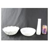62 - Fire King Milk Glass Swirl Bowl and Vase