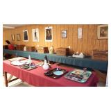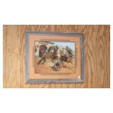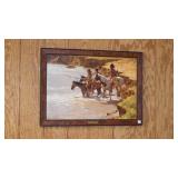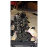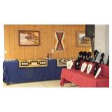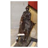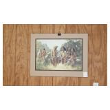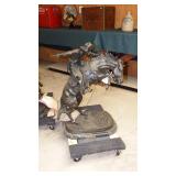 FREDERIC REMINGTON BRONZE SCULPTURES: "21"x30" WOUNDED BUNKIE, 24"x34" BRONCO BUSTER & 36"x36" TROOPER OF THE PLAINS. BEV DOOLITTLE PRINTS: "HIDE AND SEEK", "FOREST HAS EYES" & "DOUBLED BACK GRIZZLY", HOWARD TERPNING PRINTS: "CROSSING AT THE FORD", "SCOUTS REPORT" & "HOPE SPRINGS ETERNAL-THE GHOST DANCE", ARTIST PROOF PRINT "THE BURRO AND THE THE BAD MEN" & ARTIST PROOF PRINT "DESPERATE RIDE" BY ANDY THOMAS, ORIGINAL CHARCOAL DRAWING BY MEYER MATZKIN. NATIVE AMERICAN POTTERY SIGNED "M. WATSON, BURDEN BASKETS, ZUNI BEAR FETISH, M. MANYGOATS 37x46 NAVAJO RUG, 32"x60" CHINLE NAVAJO RUG, 29x56 NAVAJO YEI RUG, HEPI WOOD CARVED KACHINA DOLLS.