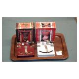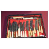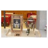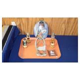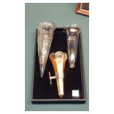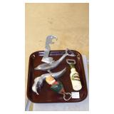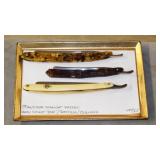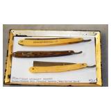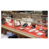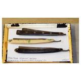 ANTIQUE STRAIGHT RAZORS, MOTHER OF PEARL OPERA GLASSES, SNUFF BOTTLES, CAST IRON: No.4 WAFFLE MAKER, "NAUGHTY NELLIE" BOOT JACK, ALLIGATOR LAWN SPRINKLER,GENEVA HAND FLUTER, (49) SWAROVSKI CRYSTAL FIGURINES, VICTORIAN WOOD SANTA BLOCK PUZZLE, ANTIQUE KEYDEL CHRISTMAS TREETOP ELECTRIC ANGEL CHIME WITH ORIGINAL BOX, DUNHILL SYLPH LIGHTER, VINTAGE G.E. OSCILLATING FAN.