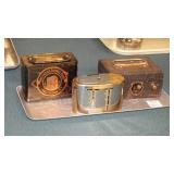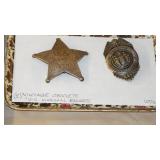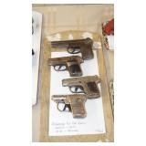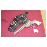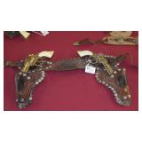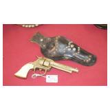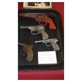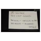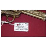 1950-60's "GENE AUTRY" LESLIE-HENRY CAP GUN WITH HOLSTER, "GENE AUTRY" LESLIE-HENRY .44 CAP GUN WITH HOLSTER, 1955-60 "ROY ROGERS " DOUBLE HOLSTER, "GENE AUTRY" PAIR OF GOLD FINISH LESLIE-HENRY CAP GUNS WITH HOLSTER & BELT, VINTAGE TOY CAP GUNS,VINTAGE OBSOLETE U.S. MARSHAL BADGES. VINTAGE STILL BANKS, GLUE POT WITH LID.