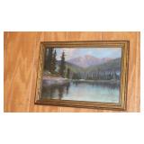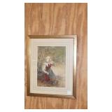 OTHER FRAMED ITEMS: OIL ON CANVAS "WINTER STREAM" BY G. SYMONS 1930, OIL ON BOARD LANDSCAPE BY GOUL, PRINT "NOTRE DAME" BY CHAGALL, WATERCOLOR OF YOUNG WOMAN SIGNED PARKER.