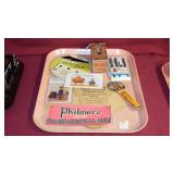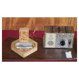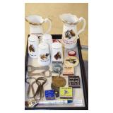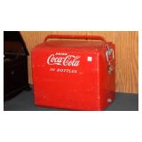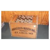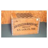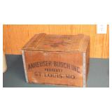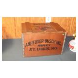 ADVERTISING: 1976 CENTENNIAL BUDWEISER WOOD ANHEUSER BUSCH CRATE WITH HINGED LID, VINTAGE ANHEUSER BUSCH BUDWEISER CRATE WITH BOTTLE CAP CHECKERS SET, PAIR OF 1960's BUDWEISER MILK GLASS WALL LIGHTS, SET OF ORIGINAL 1959 "SHULTZ & DOOLEY" STEINS, PAIR OF WEBCO "SCHULTZ & DOOLEY" STEINS, UTICA CLUB STEIN "THE COUNTESS", UTICA CLUB SCHULTZ & DOOLEY BEER TRAY, VINTAGE BUDWEISER TIN BUCKET, SARATOGA COLLECTIBLES, VINTAGE BOTTLE OPENERS, 1960's RED COCA-COLA COOLER, ANTIQUE AUTOMOBILE CAR VASES, FRAMED PHOTO "KINGNUT Co. MALONE, NY", 1960's COCA-COLA COOLER, "MASTER EQUIPMENT" THERMOMETER.