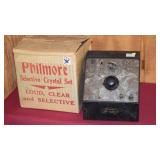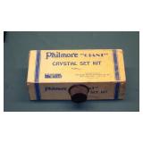 CRYSTAL RADIO COLLECTION: PHILMORE: TUBE RADIO "DOGHOUSE" RECEIVERS, PORTABLE SUPREME RADIO, "GIANT" CRYSTAL SET, LITTLE WONDER RADIO CRYSTAL SETS, TR201 KIT RADIO, MODEL 400 RADIO KIT NEW IN PACKAGE, "TINY TIM" RECEIVER, ASSORTED CRYSTAL SETS AND ACCESSORIES IN ORIGINAL PACKAGING.