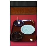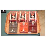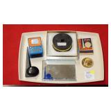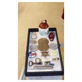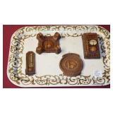 1939 NEW YORK WORLD'S FAIR: GLOBE BOTTLES, BAKELITE: PERISPHERE THERMOMETERS & PENCIL SHARPENERS, SYROCCO WOOD ASHTRAYS, COASTERS & THERMOMETER, ASSORTED SOUVENIRS.