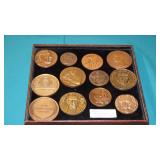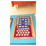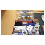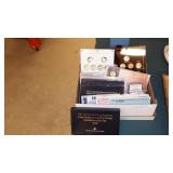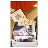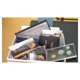 COINS & METAL ART MEDALLIONS: (8)STERLING SILVER FRANKLIN MINT COLLECTOR SOCIETY MEMBER COINS,(20) FRANKLIN MINT BRONZE AFRICAN WILDLIFE SOCIETY MEDALS, U.S. LINCOLN WHEAT CENTS~SACAGAWEA DOLLARS~ASSORTED U.S. NICKELS, SUSAN B. ANTHONY DOLLARS, U.S. STATE QUARTER COLLECTOR SETS, ASSORTED TELEMARKETER COINS, FIRST DAY COVERS WITH COINS, U.S. UNCIRCULATED YEAR SET 1968-1992 WITH BOX, (39) FRANKLIN MINT BRONZE "HISTORY OF THE OLYMPICS" COINS, "HISTORY OF AMERICA" BRONZE & PEWTER INGOTS, ETC..