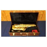 OTHER ITEMS OF INTEREST: DC PRO BOSTON SERIES ALTO SAXOPHONE WITH CASE, CANON AE-1 CAMERA WITH 50mm LENS~70-210 mm ZOOM LENS~VIVITAR FLASH, (2) NEW "EPIPHONE" HARD GUITAR CASES, 11" ARMAND MARSEILLE PORCELAIN INFANT DOLL, 10" SIGNED PETER VANDERLAAN ARTGLASS VASE, LIMITED EDITION ADORA "CARMEN" DOLL, VINTAGE LEATHER DOCTORS BAG.