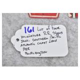 Lot: 14 - Lot of 4 Miniature Railroad Signs – 1st is Erie – 2nd is Lackawanna RR – 3rd is Great Northern – 4th is Union Pacific