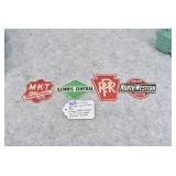 Lot: 12 - Lot of 4 Miniature Railroad Signs – 1st is Nickel Plate Road – 2nd is Milwaukee Road – 3rd is C&O For Progress – 4th is The Southern