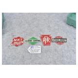 Lot of 4 Miniature Railroad Signs – 1st is Santa Fe – 2nd is Rock Island – 3rd is Chicago Great Western – 4th is Seaboard Railroad