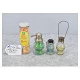 Lot: 436 - Lot of 6 Various Colored Kerosine Lantern Shades – The Green One is Marked Dietz Vesta