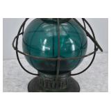Lot: 456 - RDG Co. (Reading Railroad) – Dietz Vesta Lantern – Both Frame and Blue Glass Shade are Marked RDG Co.