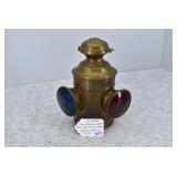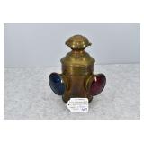 Large Dressel – 4-Sided Original Kerosine Oil Lantern – w/Yellow and Blue Shades – Approximately 17” High