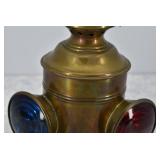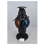 Complete Heavy Tin Hand-Held Kerosine Lamp – w/Heavy Fractured Glass Reflector and Multi-Colored Revolving Glass Lenses