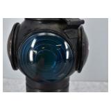 Lot: 427 - C.R.R. of NJ – Dietz Vesta Lantern w/Blue Glass Shade – Central Railroad of New Jersey – Frame is Stamped