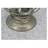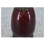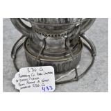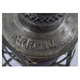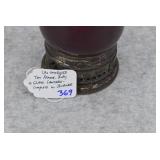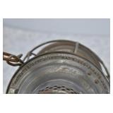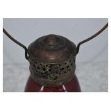 Adams-Westlake – Nickel Coated Kerosine Lantern -w/Etched Ruby and Clear Glass Fractured Shade