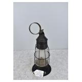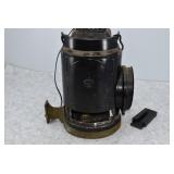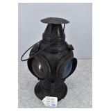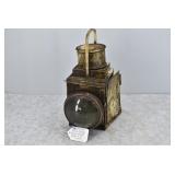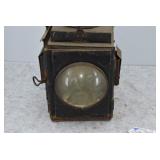 Complete Heavy Tin Hand-Held Kerosine Lamp – w/Heavy Fractured Glass Reflector and Multi-Colored Revolving Glass Lenses
