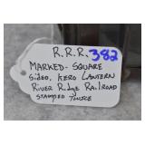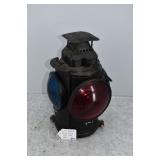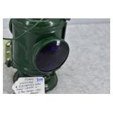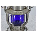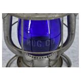 Lot: 456 - RDG Co. (Reading Railroad) – Dietz Vesta Lantern – Both Frame and Blue Glass Shade are Marked RDG Co.