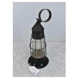 4-Sided Tin Candle Lantern – w/Early Glass and Shot Shell Match Holder
