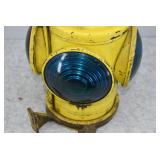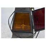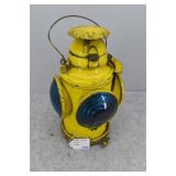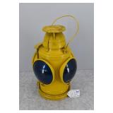 Large Dressel – 4-Sided Original Kerosine Oil Lantern – w/Yellow and Blue Shades – Approximately 17” High