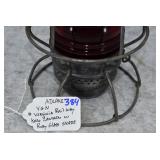 Lot: 445 - N.Y.C.S. – New York Central – Dietz Vesta Kerosine Lantern w/Unmarked Ruby Glass Shade – Frame is Marked N.Y.C.S.