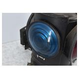 Lot: 33 - Complete Heavy Tin Hand-Held Kerosine Lamp – w/Heavy Fractured Glass Reflector and Multi-Colored Revolving Glass Lenses