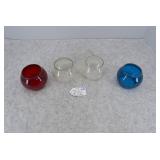 Lot: 436 - Lot of 6 Various Colored Kerosine Lantern Shades – The Green One is Marked Dietz Vesta