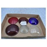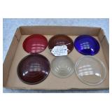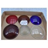 Lot of 6 Various 5 3/8” and 3½” Colored and Clear Kerosine Lantern Lenses – Most are Manufactured By Kopps or Corning