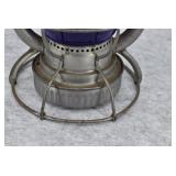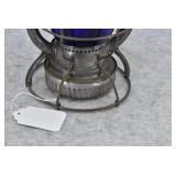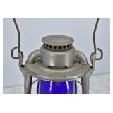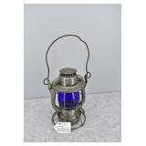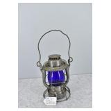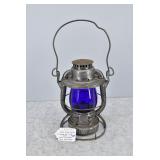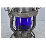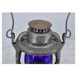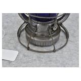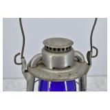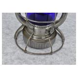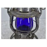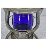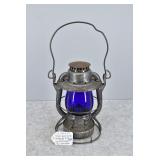 Lot: 427 - C.R.R. of NJ – Dietz Vesta Lantern w/Blue Glass Shade – Central Railroad of New Jersey – Frame is Stamped