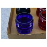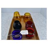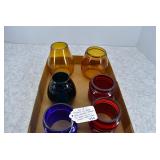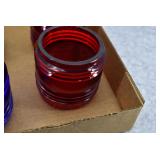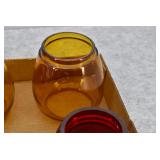 Lot: 437 - Lot of 6 Various 5 3/8” and 3 1/8” Colored Kerosine Lantern Lenses – Manufactured By Macbeth, Kopp, and Corning