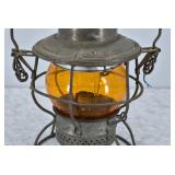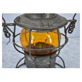 Lot: 444 - P.R.R. – Pennsylvania Railroad – Adlake No. 250 Kerosine Lantern w/Unmarked Amber Shade – Frame is Stamped P.R.R.