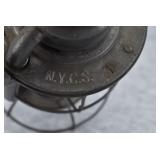 N.Y.C. Lines – Dietz Vesta Kerosine Lantern w/Wood Handled Bail – Both Frame and Shade are Marked N.Y.C. Lines