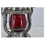 D. W. & P. – Dietz Monarch Lantern – w/Embossed Ruby Glass Shade
